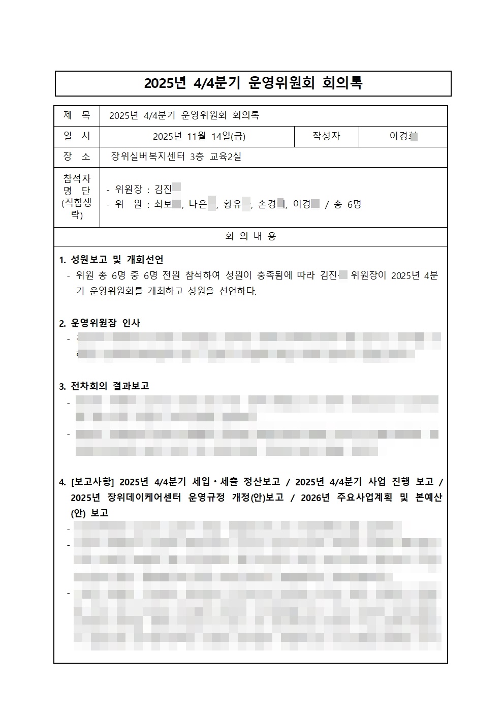 2025년도 제4차 운영위원회 진행에 따른 결과를 공지합니다.